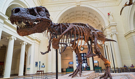 要准确计算出已灭绝动物的种群数量非常困难。这需要我们知道,在漫长的时间里,霸王龙一共繁衍了多少代;以及在整个空间范围内,每一代霸王龙有多少只。两者相乘,就可以大致估算出地球上出现过的霸王龙数量。我们要从哪里获得这些数据呢?霸王龙化石非常珍贵,世界上第一个完整霸王龙化石 Sue 曾创造古生物化石拍卖最高价。|维基百科