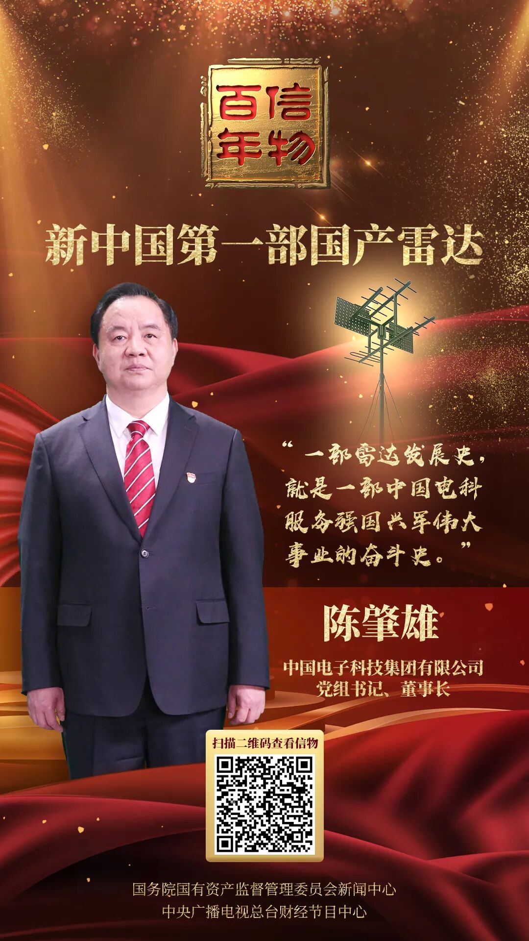 信物讲述人中国电科党组书记、董事长陈肇雄讲道:“这部雷达的研制成功,是我们党团结一切力量赢得革命胜利的时代注脚。”