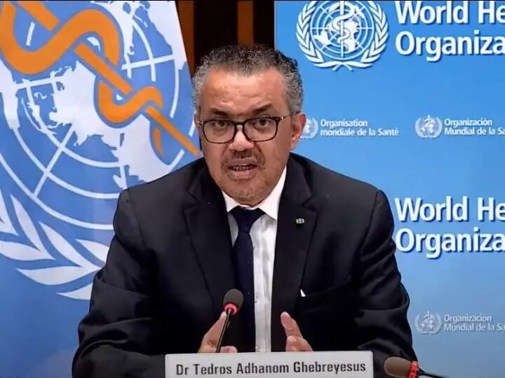 世界卫生组织总干事谭德塞5月7日在瑞士日内瓦出席新闻发布会的视频截图。新华社 发