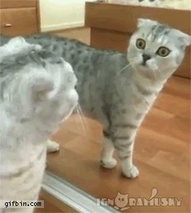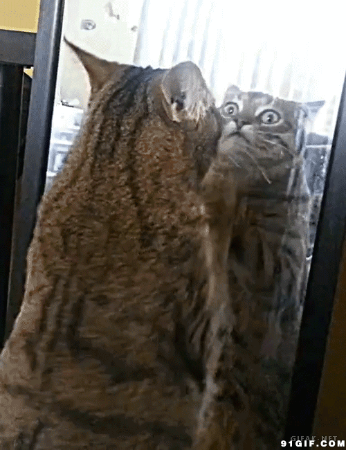 目前研究人员普遍认为,能够通过镜子测试,可以作为动物有自我意识的一个证据,但没能通过镜子测试,并不能证明动物缺乏自我意识。比如说,动物通过声音和气味区别自己和其他同类,也是自我意识的表现,但镜子测试明显测不出来……另外,镜子是一种人工制造的物体,在自然界中并不存在(水面、冰面虽然可以照物,但显然还达不到镜子的效果),很多动物可能并不是没有自我意识,而是不会使用镜子。想象一下,你给古人一个智能手机,他们通过前置摄像头看到自己的脸出现在屏幕里是什么感觉?动物们看到镜子中的自己感受估计也差不多。吓死宝宝了虽然在很多实验中,研究人员会提前把动物放入有镜子的环境,让它们事先熟悉镜子的功能,但考虑到自然状态下动物似乎并没有使用镜子的必要,通过有限的几次接触就想让动物熟练掌握镜子的用法,似乎并不公平。不过,不管怎么说,镜子测试还是为我们撸猫提供了新的思路:观察喵主子在镜子前的反应简直太有趣啦哈哈哈……