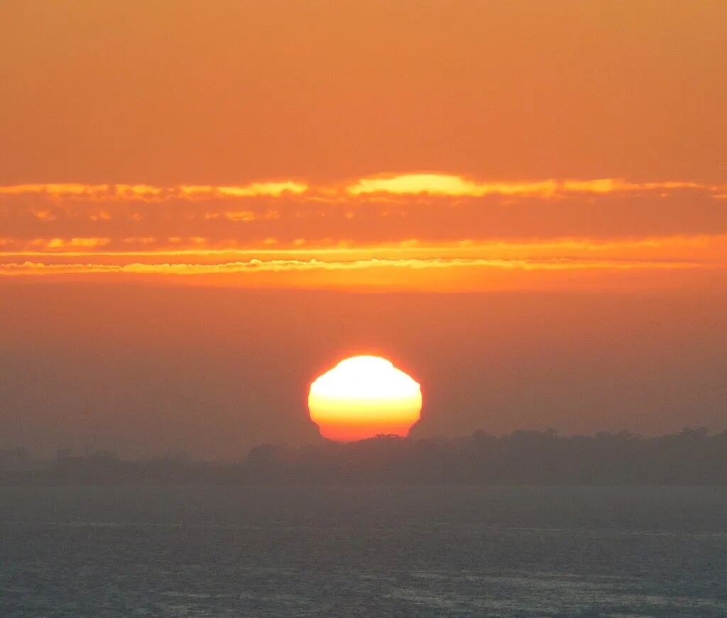 太阳的像因大气折射而扭曲 | 图源:Wikipedia