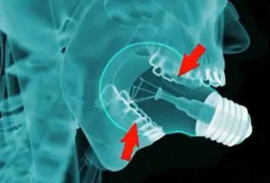 一般人能将嘴张到3.5~5.5厘米,灯泡要硬吞也能吞下。然而,吞进去的灯泡将上下颌骨的开合度撑到了极限,它抵住了上下颌骨,下颌骨关节前移受阻,颌部肌肉绷紧,没法让已经部分合拢的出口张得更大,于是灯泡就被卡住了。