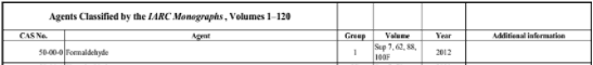 甲醛的致癌性应该是大家最关注的一点。在世界卫生组织国际癌症研究机构公布的致癌物清单中[4],将甲醛放在一类致癌物列表中。