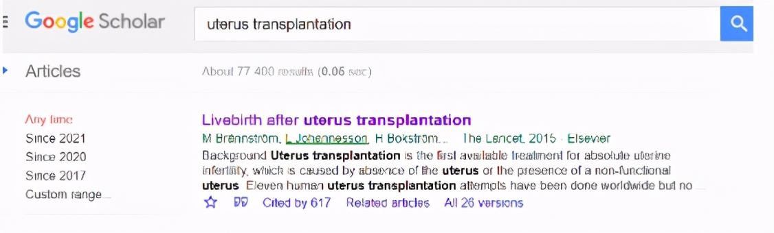 比如这是scholar上的子宫移植研究,可谓汗牛充栋