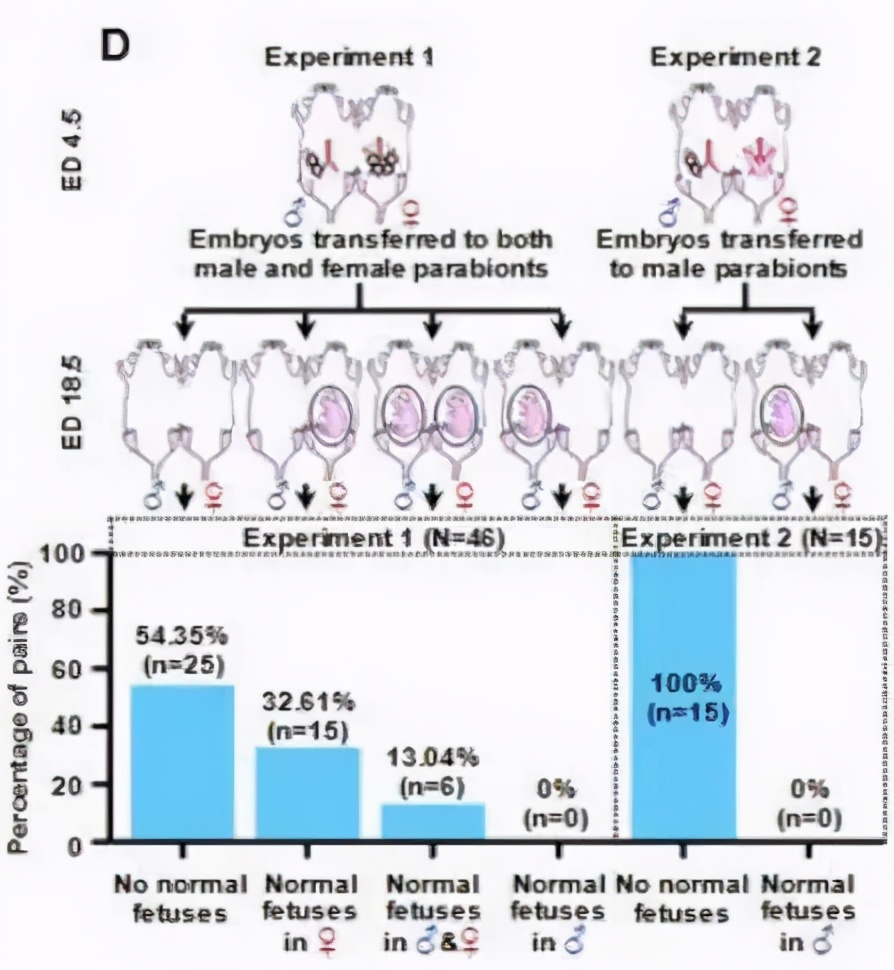 首先,联体雄鼠中的子宫和激素作用下,移植后的胚胎是可以部分正常发育的