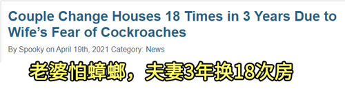 但问题是,搬完后依然会碰到蟑螂,妻子仍然会被吓得没法正常生活,于是继续搬,而且这一搬就是18次。