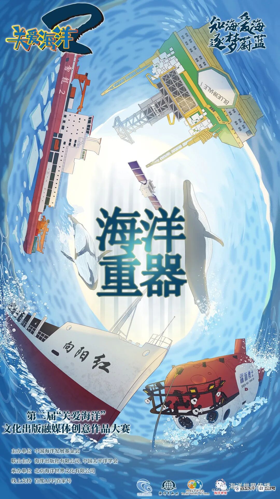 第二届“关爱海洋”文化出版融媒体创意作品大赛是由中国海洋发展基金会主办,海洋出版社有限公司、中国太平洋学会联合主办,北京海洋世界文化有限公司承办,百度APP线上支持的海洋主题作品创意大赛。旨在通过大赛弘扬和展示加快建设海洋强国的突出成就。