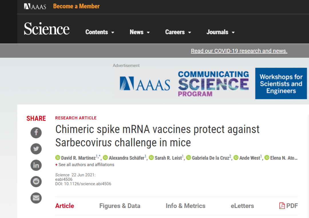 ●据22日发表在《科学》杂志上的论文,为防止未来冠状病毒再次流行,美国北卡罗来纳大学吉林斯全球公共卫生学院已经研发出一种能预防广泛类型冠状病毒的通用疫苗。该论文称,经测试发现,该疫苗不仅能保护小鼠免受新冠肺炎病毒的侵袭,还能保护小鼠免受其他冠状病毒的侵袭,同时还能触发免疫系统抵御一种危险的冠状病毒变种。(来源:科技日报)