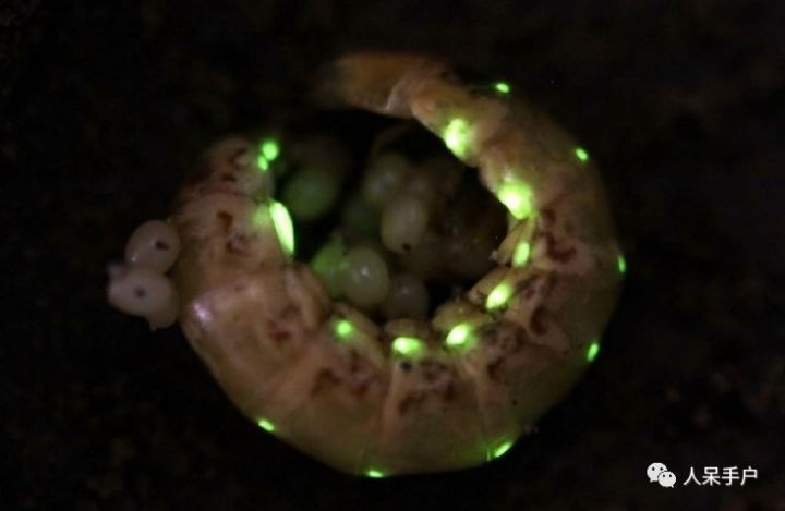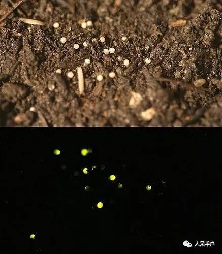 许多种类的萤火虫在各个虫态都能发光。瞧,浅黄色的卵粒在夜间会发出微弱的光,星光点点,甚是奇妙。