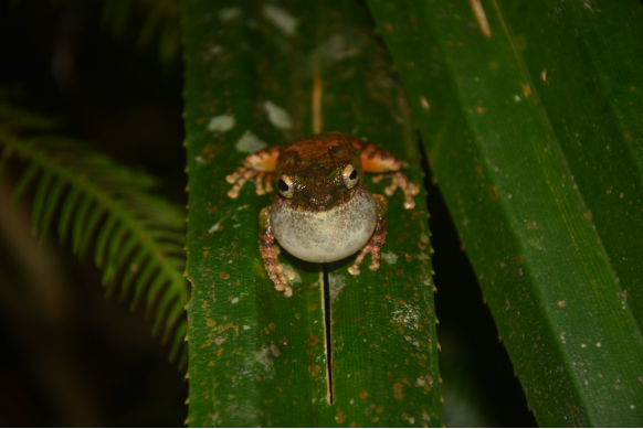 图3. 雄性锯腿原指树蛙鸣叫时膨胀的鸣囊