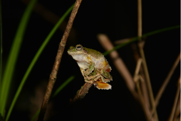 图11. 雄性锯腿原指树蛙爬上枝头求偶