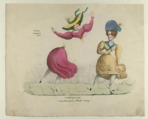 描绘紧身束腰(tightlacing)令人“折腰”的漫画,19世纪流行的紧身束腰,可能导致相当大的生理伤害,如今也有束腰过紧导致受伤的新闻 | Wikimedia Commons