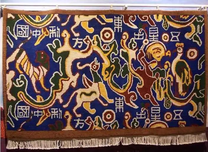 比如在新疆和田出土的汉代文物中,就发现了一件织锦,上面写着五星出东方利中国 八个篆体汉字。