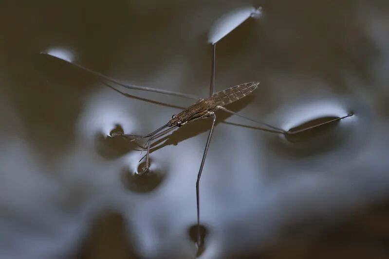 水黾利用水的表面张力和疏水刚毛浮在水上 | 图源:Flickr