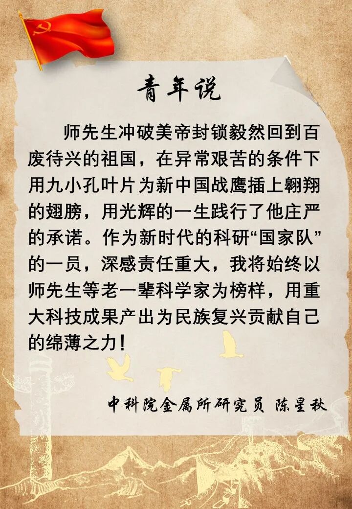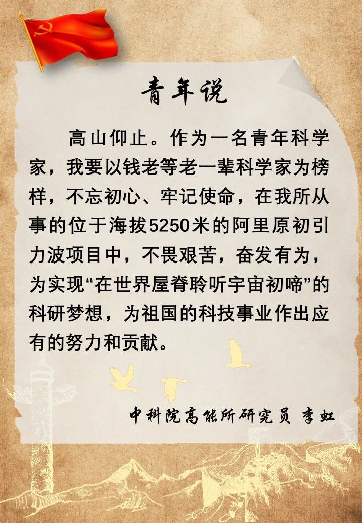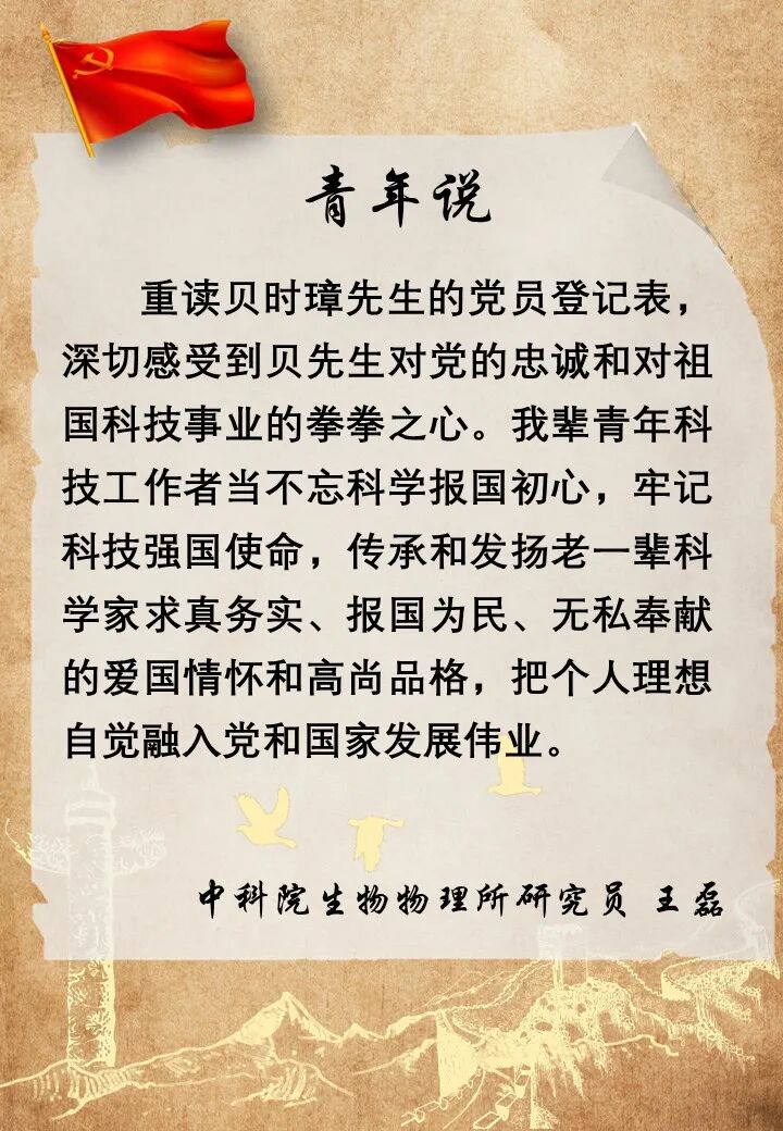 “一息尚存,此志不息”,“一日入党,终身践行共产党人的使命与担当”,“我参加这个政党目的不是为了自己名利,而是为了更好的为人民服务”,科学家们的心声里包含着对党忠诚、爱国奉献的品质。