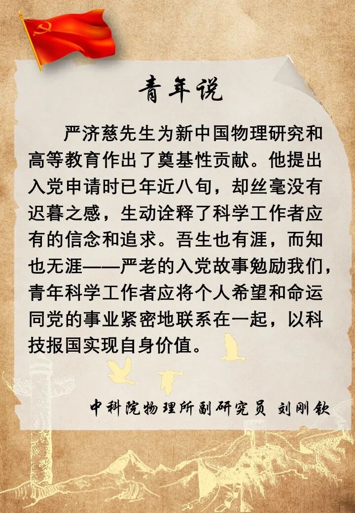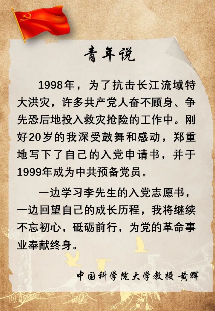 回望历史征程,我国科技事业的辉煌篇章,离不开爱国科学家们为人民服务、为祖国奉献的忘我付出。今天,让我们翻开泛黄的纸页,重温一些科学家的入党心声,聆听青年科学家的学习感悟,弘扬科学家精神,铭记入党初心。