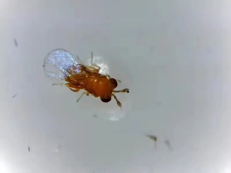 虽然身长不足1 mm,但战斗力却爆棚,由于赤眼蜂是卵寄生蜂,主要寄生鳞翅目昆虫卵,往往害虫还没来得及孵出来吃一口叶片,便被赤眼蜂“快准狠”地消灭在萌芽阶段。