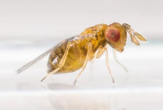 赤眼蜂体长0.5~1.0 mm左右,小到几乎看不见,只能在显微镜下才能清楚看清它的模样:头上有着一对可爱的红色复眼,前翅有缘毛,翅面上的纤毛排列成行,微微颤动,看起来莫名有些萌。