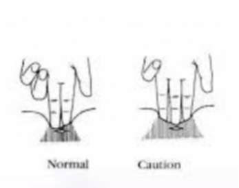 仰卧位,两腿弯曲、露出腹部,左手在头后支撑,右手指并拢,垂直探入腹部,身体放松。然后将上身抬起,感觉到两侧腹肌向中间挤压手指,如果感觉不到挤压,那么就把手指向两边挪动,直到找到紧张硬的肌肉。测量两侧硬肌肉的手指数量(距离)。