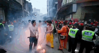 不过你也不能随便搞一挂鞭炮就往人群里扔,每条龙都有护龙队,除了增加抢龙须等部位的难度,也负责维持秩序。
