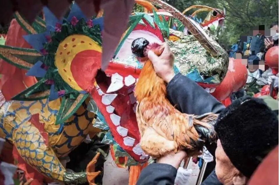 遮住龙眼的布被揭开,有长者咬破鸡冠,用鸡血涂在龙眼和龙嘴里的珠子上,这时天龙才算重临人间,每一步都马虎不得。