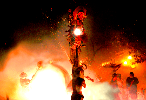 等到最后龙身被炸的粉碎,当地人就会将龙头送进火堆,送完福的龙魂会随着烈火回到天上,也叫“送龙归天”。