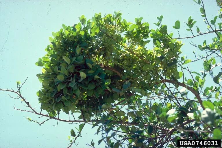 丛枝,远远看去像在是树上搭了一个鸟窝