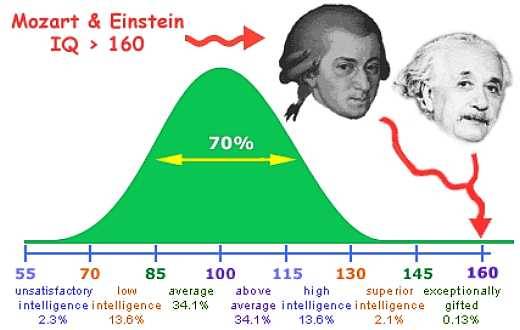 好消息是,现实生活中,像爱因斯坦这样智商爆表的天才是少数的,大部分人天生的智商是差不多的,也就是智商是按正态分布的。