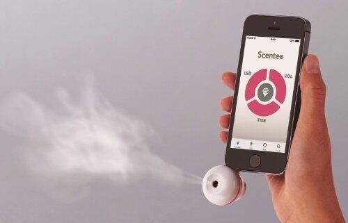 例如Scentee,使用者下载Scentee App之后,同时购买能与手机连接的特殊设备,设备内置香盒。将设备插入耳机口,通过点击手机app,就能让设备像加湿器一样喷出气雾,发出指定的气味。通过编程,它还能实现更多操作。在玩游戏的时候,玩家每次发射武器时,Scentee就能发出火药味。