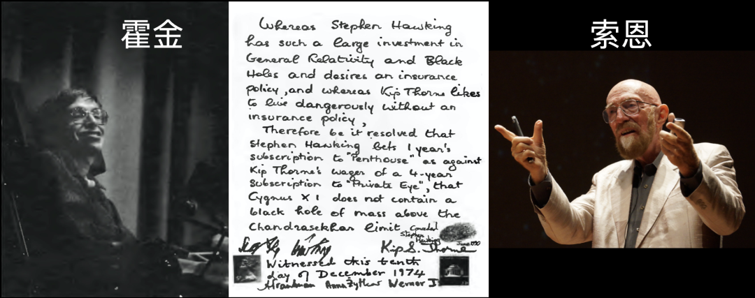 但是在随后的十多年里,对于天鹅座X1的本质——究竟致密天体是黑洞还是中子星,天文学家们一直众说纷纭。20世纪70年代的时候,作为黑洞研究的知名物理学家霍金和索恩甚至为此而打赌立下了字据,霍金认为应该是中子星,而索恩认为是黑洞。到了上世纪90年代,越来越多的观测证据表明,这个系统中心应该是黑洞,霍金才签字表示认赌服输。