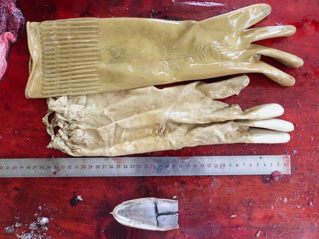 答案其实不难猜,但我没想到真的那么糟——是两只橡胶手套,而且还不是来自同一副。