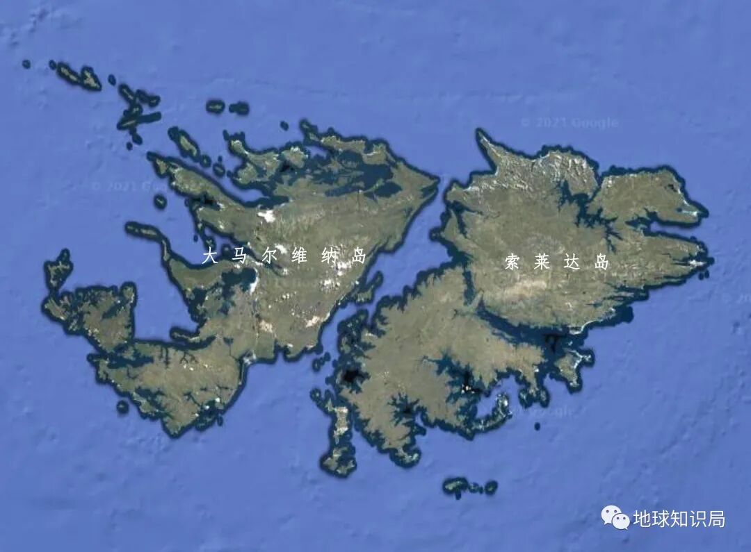 群岛面积约为12000平方公里,由两个主岛:大马尔维纳岛(西福克兰岛)和索莱达岛(东福克兰岛),以及776个附属岛屿组成。
