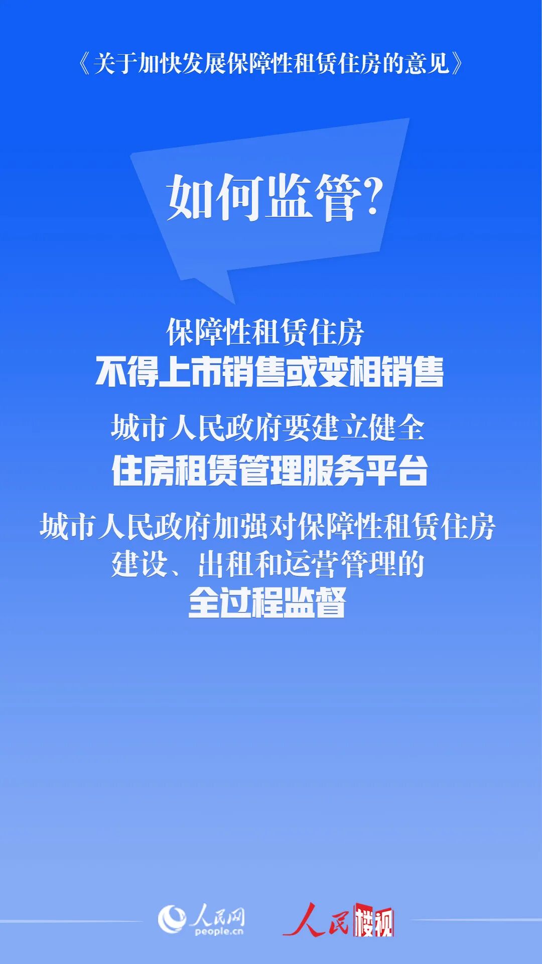 第四,强监管。要加强对保障性租赁住房整个建设出租和运营管理的全过程监督,防止上市销售或者变相销售等违法违规行为。