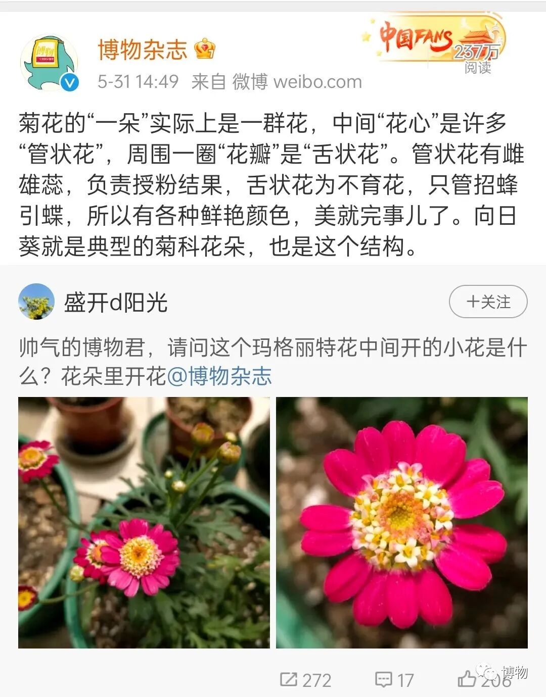 说到这里,我想起微博上最近也有网友问,说为什么玛格丽特花的中间还会开小花?