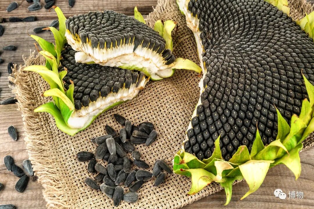 我们平时吃的葵瓜子就是由这一朵朵其貌不扬的管状花孕育来的。结出瓜子时,大多数花已脱落,花萼包着黑乎乎的瓜子,很有丰收的味道。