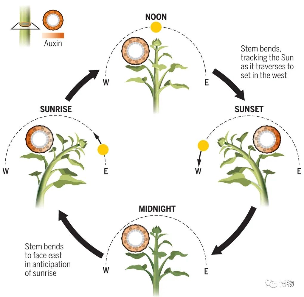 还有个问题。向日葵的花盘一整天下来从东扭到西,晚上是怎么转回去的呢?
