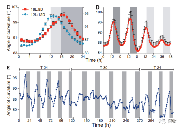 图E:顶部T-24表示一天周期为24小时,T-30表示一天周期为30小时。图片来自参考文献