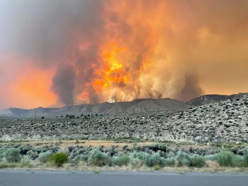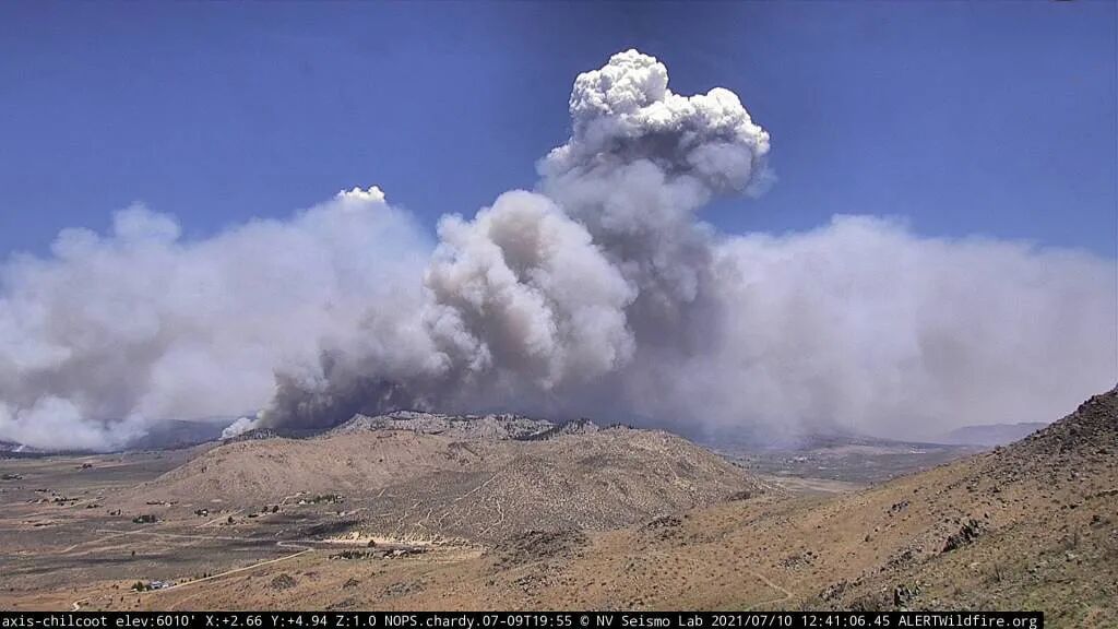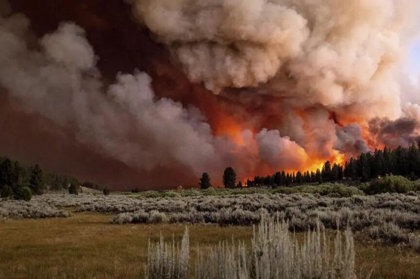 在加州普卢马斯国家森林公园的贝克沃斯,两次闪电引发的森林大火已整整持续了十天,向着东北方向蔓延,目前还没有任何放缓的迹象。上升的热空气形成了巨大的、蘑菇状的火积云,高达数千英尺,并产生了自己的气候系统和闪电,导致更多的火灾。