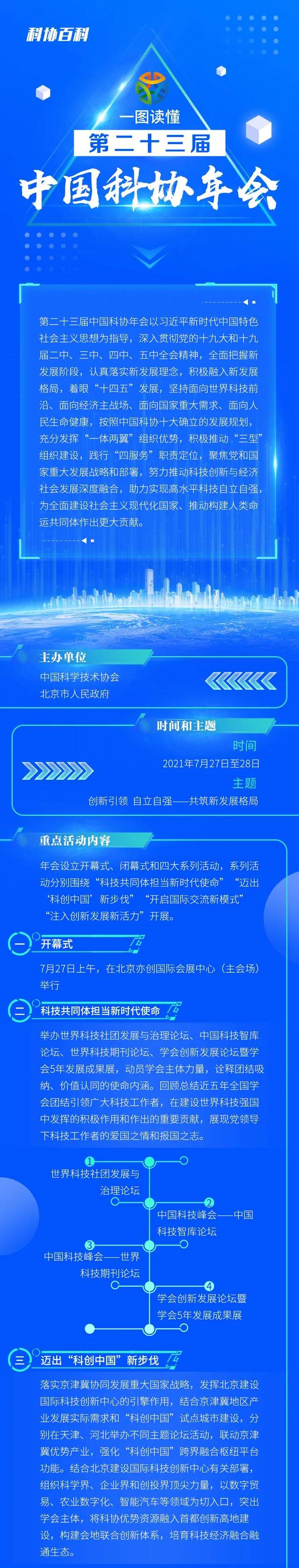 中国科协新闻发布会宣布,第23届中国科协年会将于7月27-28日举办,主题聚焦“创新引领 自立自强——共筑新发展格局”。