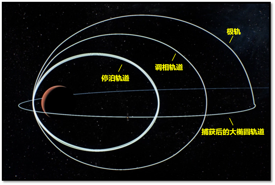 天问一号整个任务期间会多次改变轨道。最近这三个月的地形考察期所在的“火星停泊轨道”是一个近火点280公里、远火点5.9万公里、周期2个火星日的极轨道。