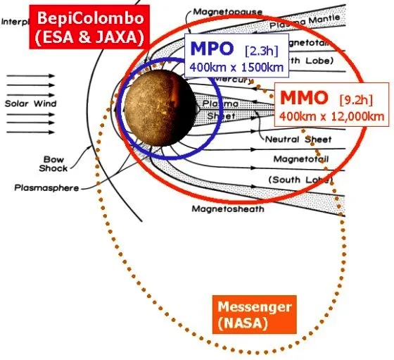 NASA信使号探测器和欧空局贝皮科隆博号的两个子探测器MMO和MPO的探测轨道 | 马普所