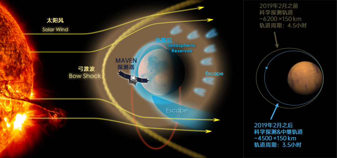 NASA目前在轨工作的MAVEN探测器,也在做相关的科学探测,不过MAVEN的工作轨道在近火点约150公里,远火点在约4500-6000公里高度,与天问一号计划的高度不同。这在科学探测上是好事,因为两者的结果可以互为补充。