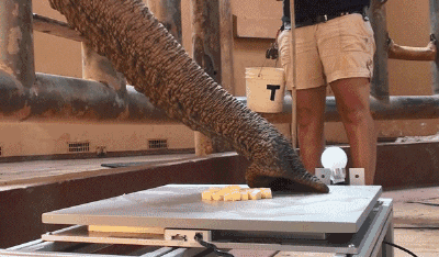 面前的平台上摆着从未见过的陌生食物:它圆圆的、薄薄的,闻起来似乎有点香——那是一块墨西哥薄脆饼。仅有0.5毫米厚的脆饼贴在光滑的表面上,很难拾起,而且稍一用力就会弄碎,这应该是Kelly见过最难对付的食物。 出人意料的是,Kelly首次尝试就完成了这个高难挑战。它将脆饼毫发无损地抓起塞进嘴里,整个过程只用了3秒时间。 抓不起来?没有的事 | 研究者提供 她是怎么做到的?答案是依靠象鼻强大的吸力。 食物太难抓?用吸就可以 Kelly是一项科学研究的被试,研究者们希望通过她深入了解大象鼻子的出色能力[1]。 平时,非洲象要利用鼻子抓取草、叶子、水果、树皮等各种食物。而这项研究发现,当抓取遇到困难时,大象们还会动用自己的吸力来吸取食物。这种通过气流进行抓取的能力在陆生哺乳动物中十分罕见。 非洲象Kelly | Zoo Atlanta 研究中,人们为Kelly设置了各种各样的食物挑战,例如一系列数量、尺寸不同的食物小方块。结果显示,当面对个头较大、数量较少的食物方块时,大象会控制象鼻前段,像一只手一样抓起食物。而如果食物块尺寸小、数量多,很难“一把抓住”时,大象就会猛吸一口气,把食物收集到鼻子中。不过,如果是麸皮这样颗粒非常小的食物,大象又会放弃吸取,转回抓取的方式进食。这种选择一方面提高了进食效率,另外一方面可以帮助大象避免吸入颗粒异物。 食物小块又太多?用吸力一网打尽 | 研究者提供 而即使是薄脆饼这样轻薄易碎而又陌生的食物,大象依然可以通过吸取顺利完成取食。高速视频显示,象鼻首先用吸气的方式将薄饼提起,然后再将它抓牢。 吸得快,装得多 象鼻的吸力究竟有多大?结合对象鼻吸水过程的测量,研究者对此进行了计算。 结果显示,大象吸水的速度可以达到每秒3.7升,这流量相当于同时打开了24个淋浴喷头,或者20个马桶同时冲水。而在它们吸气时,气流的瞬时速度可达50米/秒——这几乎是人打喷嚏时气流速度的30倍。 象鼻吸水。水中加入了用来显示水流的奇亚籽 | 研究者提供 大象的强大吸力不只靠肺活量,象鼻的结构特征也很重要。象鼻不是一根固定不变的“吸管”,在吸取液体时它可以迅速扩张:鼻孔半径扩张可达30%,鼻腔容积最多能够扩大64%。可扩张的鼻孔不仅能存下更多水,也能帮助气流加速,为吸取难抓食物提供有利条件。 不仅如此,大象的鼻腔内壁也与其他动物不同。论文共同第一作者、中山大学吴嘉宁告诉果壳,他们分析了大象鼻腔内部的构造,并将它与其他多种哺乳动物进行对比——比较对象甚至还包括吴嘉宁自己的鼻孔。观察显示,大多数哺乳动物鼻道内部是粗糙甚至有鼻毛的,而大象的鼻道则格外光滑。这样一来,气流在鼻腔中畅通无阻,就更容易形成足够大的负压,方便吸取各种东西。 灵活柔软的象鼻一直是工程师们学习模仿的对象,对象鼻吸取能力的研究也可以为新型仿生软体机器人的设计提供参考。 参考文献 [1] http://rsif.royalsocietypublishing.org/doi/10.1098/rsif.2021.0215 [2] https://www.sciencedaily.com/releases/2021/06/210601194151.htm [3] https://www.nytimes.com/2021/06/01/science/elephant-trunks-suction.html 作者:窗敲雨 编辑:Luna