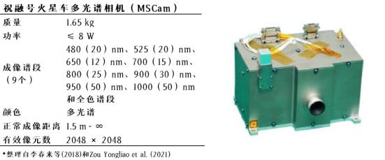 祝融号多光谱相机的参数和外形。来源:参考文献 [1, 2]