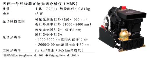 天问一号环绕器矿物光谱仪参数和外形。来源:参考文献 [1, 2]
