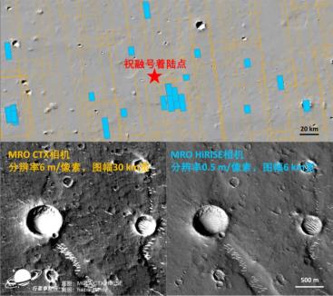 目前火星拍照的主力探测器之一火星勘测轨道飞行器(MRO)就是采样用了这种双分辨率相机协同工作的配置:中分辨率相机(CTX)分辨率6米/像素,图幅30千米宽,高分辨率相机(HiRISE)分辨率0.3-0.5米/像素,图幅6千米宽(@ 300千米高)——后者也是天问一号之前唯一能拍摄优于米级分辨率火星影像的相机。