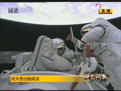 “神舟七号”任务中,画面中央半身探出舱外者即为刘伯明