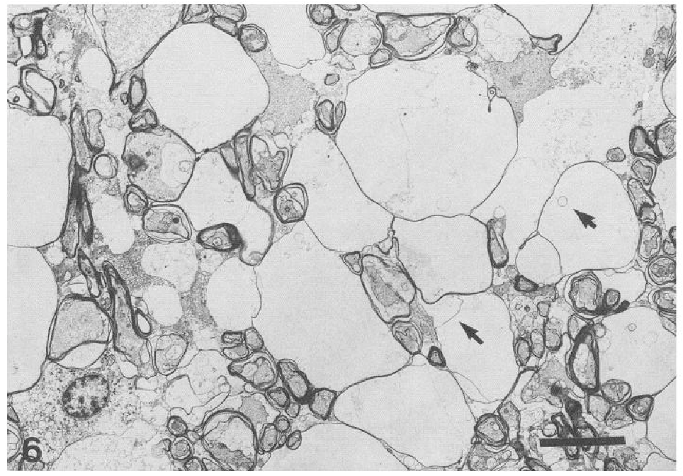 箭头所示为脑髓中出现的空洞 | 参考资料[2]