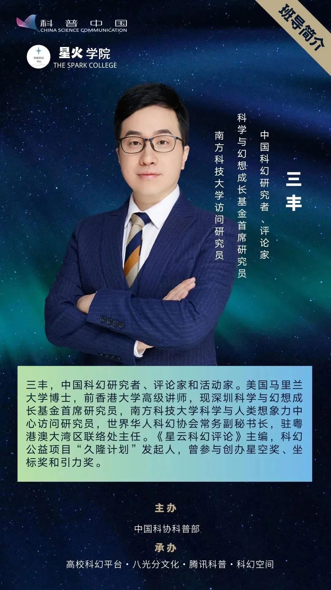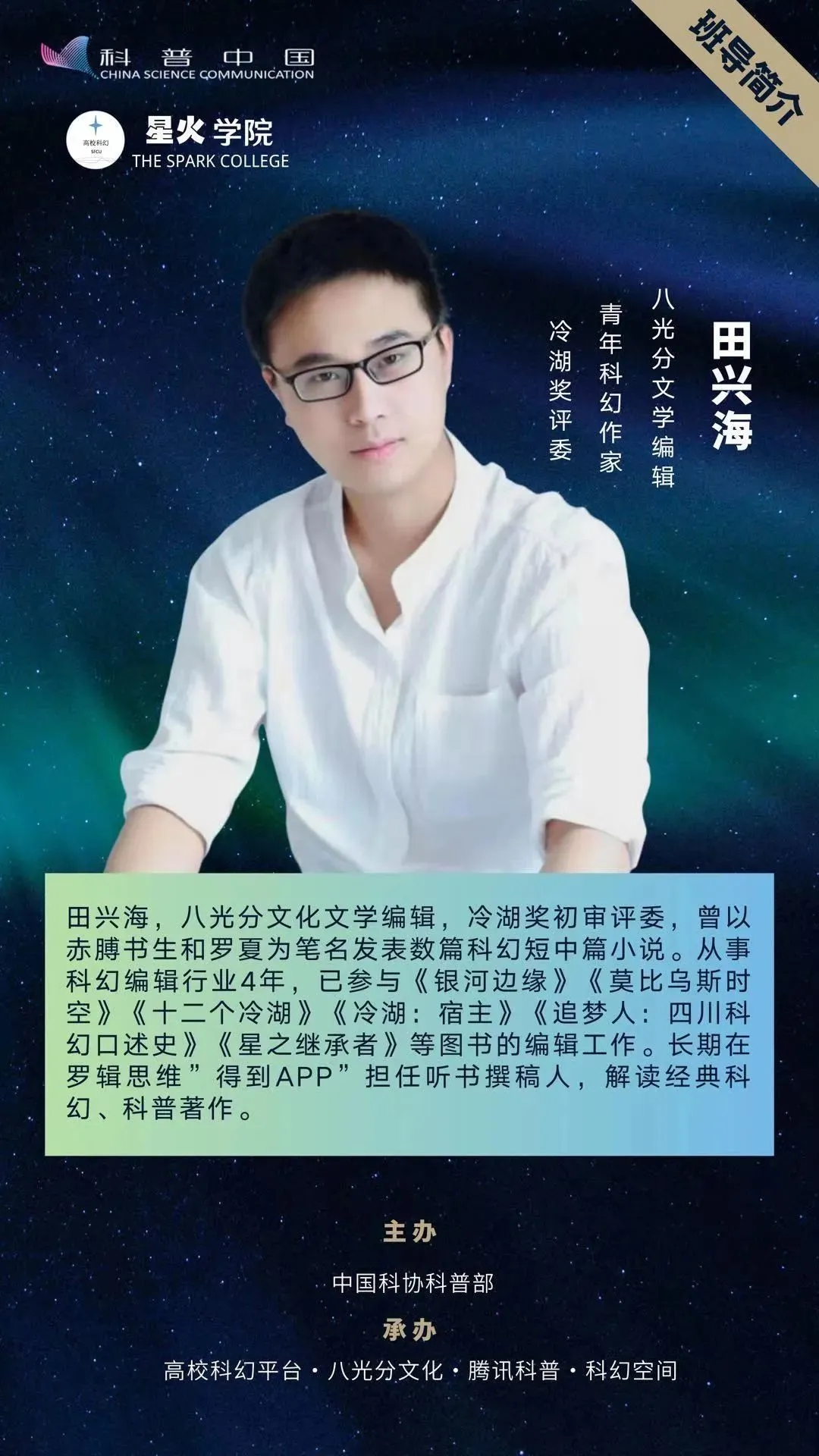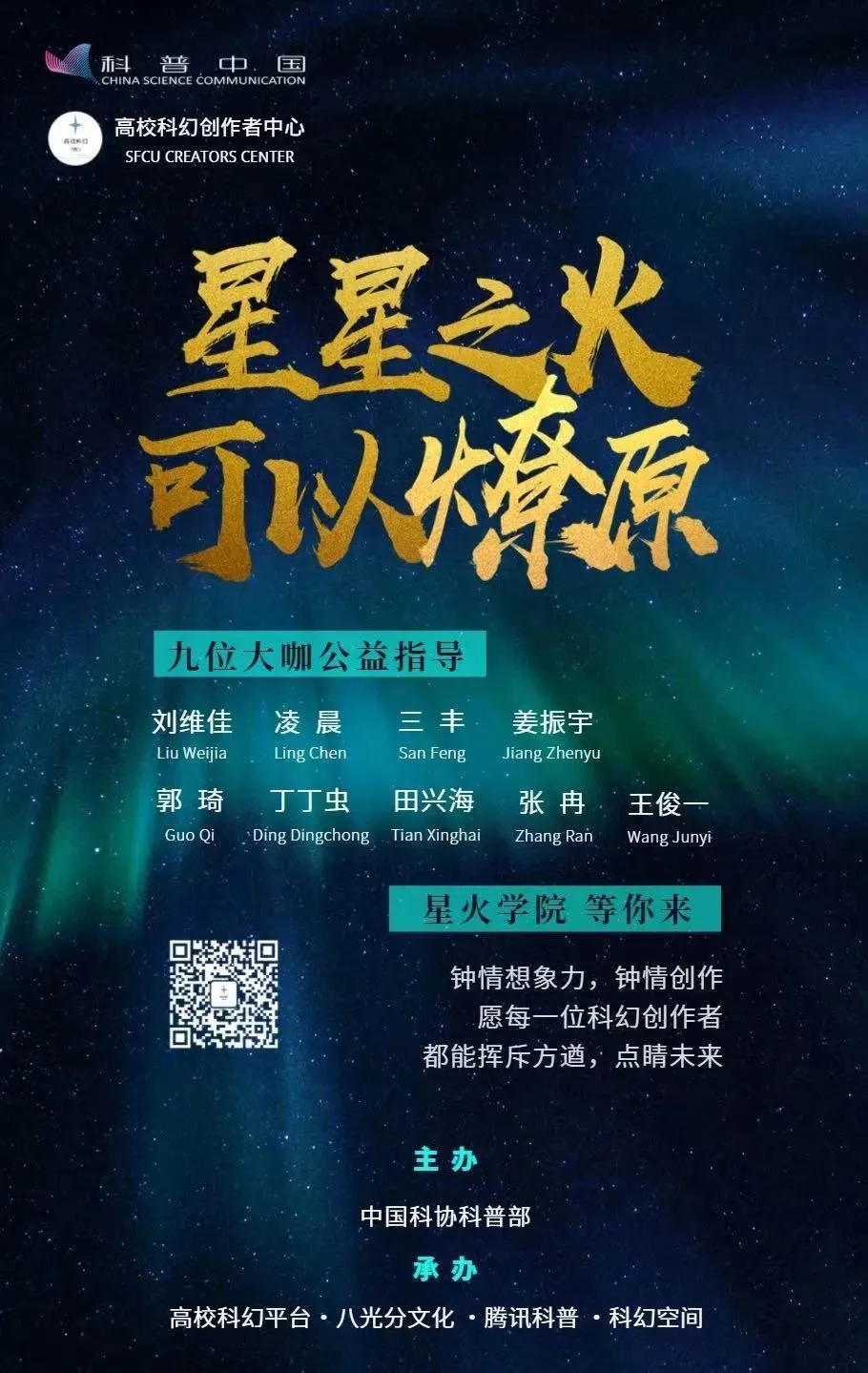 为了进一步扶持校园科幻作家成长、壮大高校科幻作家队伍、培养优秀校园科幻作家,促进更多优秀科幻作品的产生,由中国科协科普部主办,高校科幻平台、八光分文化、腾讯科普、科幻空间联合承办,星火学院第二期公益培训工程正式启动!