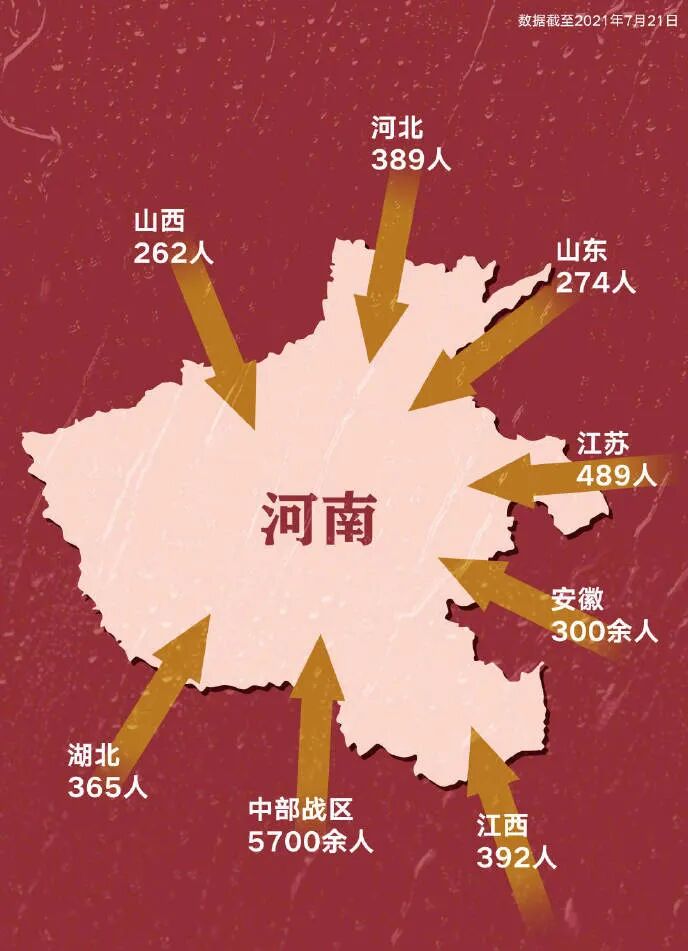 7月20日起,河南遭遇持续强降雨。中部战区迅速启动应急预案,指挥战区驻豫部队、武警官兵部队和民兵多地同步投入抢险救灾。应急管理部连夜调派河北、山西、江苏、安徽、江西、山东、湖北7省消防救援力量及装备紧急驰援河南防汛抢险救灾。